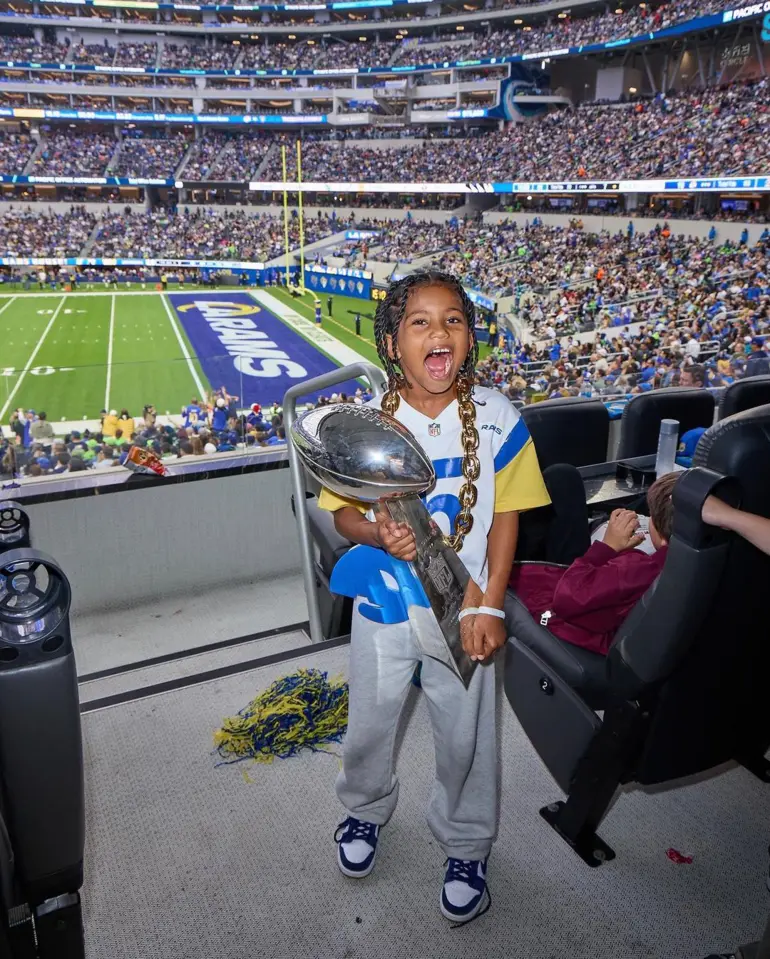 The reality star took her young child and a handful of his buddies to the Los Angeles Rams vs. Seattle Seahawks game on Sunday at SoFi Stadium.