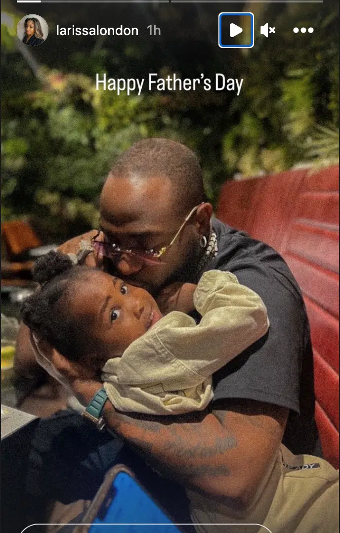Larissa London, an American-based makeup artist and the mother of one of Nigerian singer Davido’s children, sends a heartfelt Father’s Day message to him. This gesture comes shortly after Davido publicly acknowledged the paternity of his second son, Dawson. Taking to her Instagram story, Larissa shares a heartwarming photo of Davido bonding with their child, accompanied by a message expressing her wishes for a Happy Father’s Day.