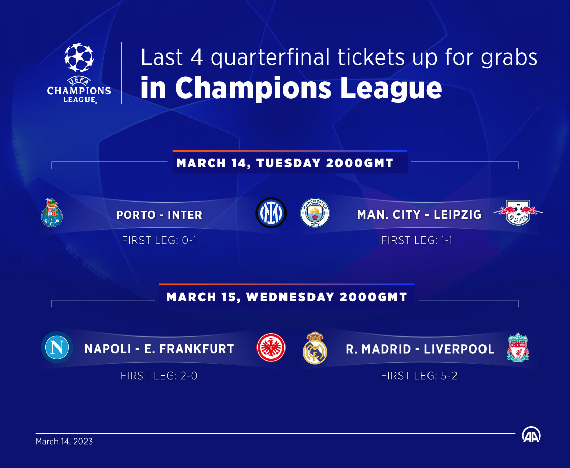 Champions League Last 16-second leg fixtures:
