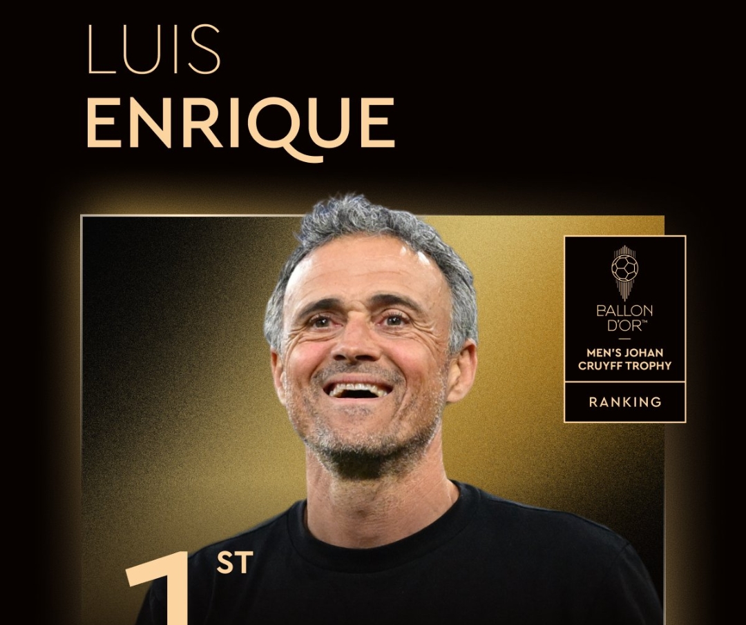 Paris Saint-Germain boss Luis Enrique has been crowned 2025 Men’s Coach of the Year (Johan Cruyff Trophy) at this year’s Ballon d’Or.
