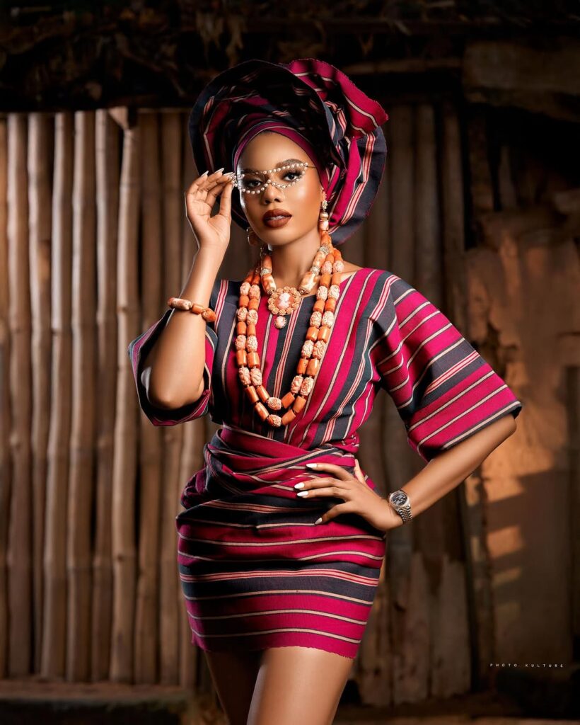 Her outfit was a beautiful blend of tradition and flair. She showed up in a mini aso-oke bùbá and ìró, featuring deep reds, greys, and subtle touches of soft pink. But it didn’t stop there—Nancy went all in with a classic gele and an ipele draped gracefully on her arm, adding that signature Yoruba elegance.