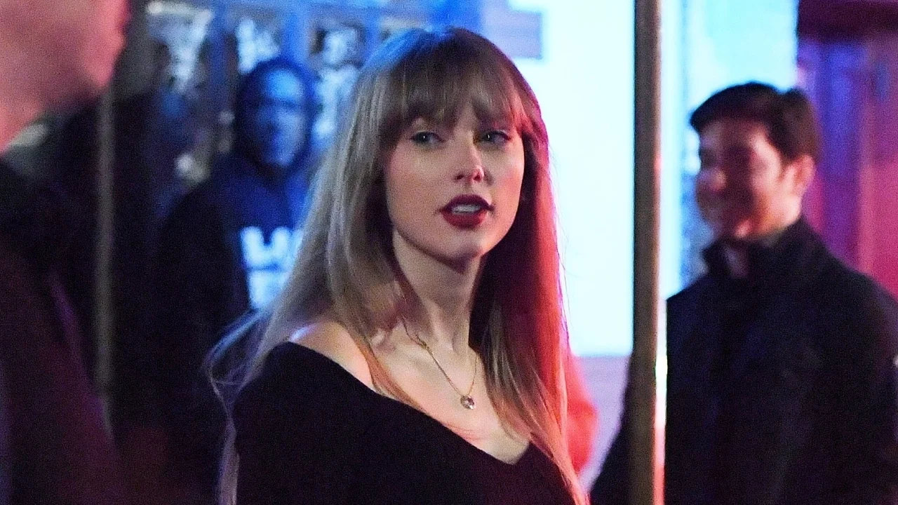 For the occasion, the 33-year-old singer, who is currently on her The Eras tour, wore a black off-the-shoulder top with embroidered high-waisted jeans and black heels. She completed the look with a glittering handbag and her trademark red lipstick.