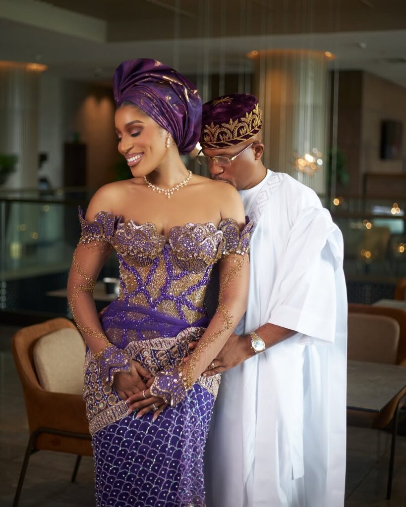Naeto C, ever the stylish partner, complemented her perfectly in a crisp white agbada and a purple fila to match her elegance. It wasn’t overdone—it was effortless. That’s the magic.