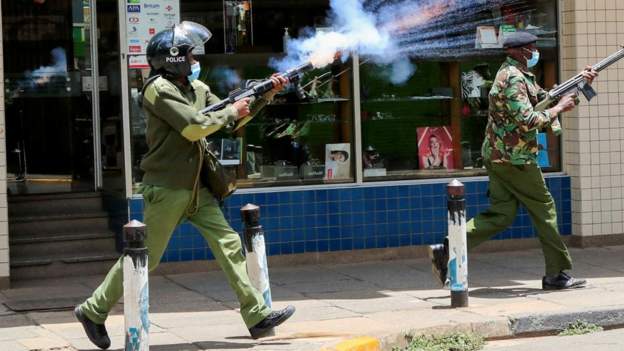 During the protests, police used tear gas on opposition leader Raila Odinga’s convoy in Nairobi.