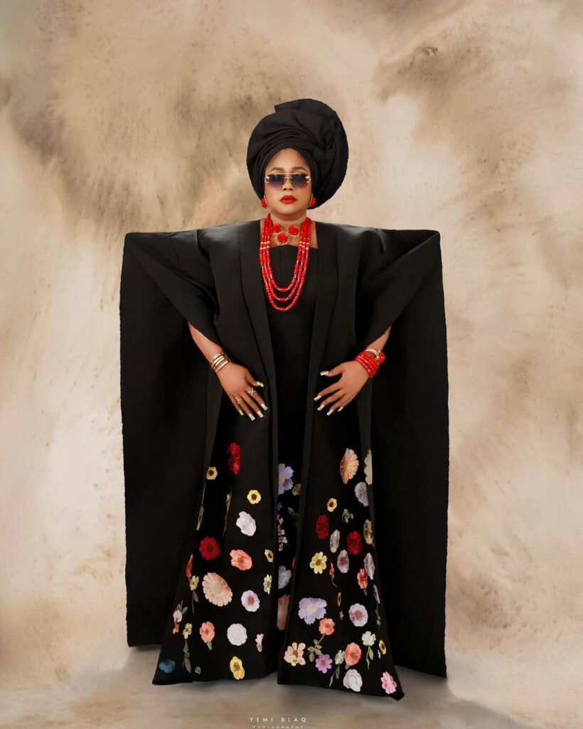 Tayo topped off the look with dark sunglasses, a bold red lip, and layers of coral beads that gave her that unmistakable regal edge. You could tell she didn’t just dress for the event—she owned it.